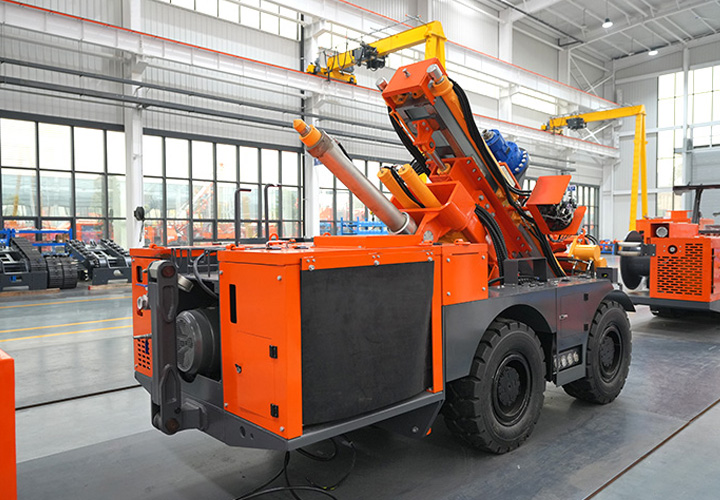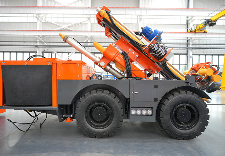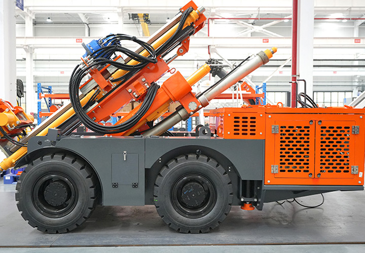 KODT-125是一款輪胎式礦用潛孔鉆機(jī),電壓等級(jí):380V,采用潛孔沖擊器作業(yè),閉式四驅(qū)液壓系統(tǒng),適用于3.3-4m地下采場(chǎng)環(huán)形孔的穿鑿,是專用的穿孔設(shè)備,也可用于天井和斜井的開鑿及回采作業(yè)。主要功能和裝置如下:適用于鉆孔直徑范圍120-254mm,鉆孔深度0-100m;鉆架可環(huán)向360°旋轉(zhuǎn),前后-10°-55°度擺動(dòng),適用于環(huán)向打孔;鉆臂裝載有液壓穩(wěn)桿機(jī)構(gòu),保證鉆孔直度,偏斜率≤1%;機(jī)身配有頂升支腿和后擺動(dòng)橋,可在路面坑洼惡劣條件下工作;設(shè)備四驅(qū)驅(qū)動(dòng),可實(shí)現(xiàn)360°轉(zhuǎn)彎,原地掉頭;長(zhǎng)距離移動(dòng)時(shí),設(shè)備可解鎖制動(dòng),且配備牽引,方便使用拖車進(jìn)行快速移動(dòng);鉆機(jī)回轉(zhuǎn)具有無級(jí)調(diào)速功能,可根據(jù)不同巖層狀況調(diào)整鉆速,提高效率;且設(shè)備配置遙控裝置,方便操作人員操作設(shè)備的同時(shí),提高了操作安全性和可靠性;設(shè)備配備了沖洗裝置,方便操作人員清理設(shè)備,維持設(shè)備整潔,提高設(shè)備使用壽命。